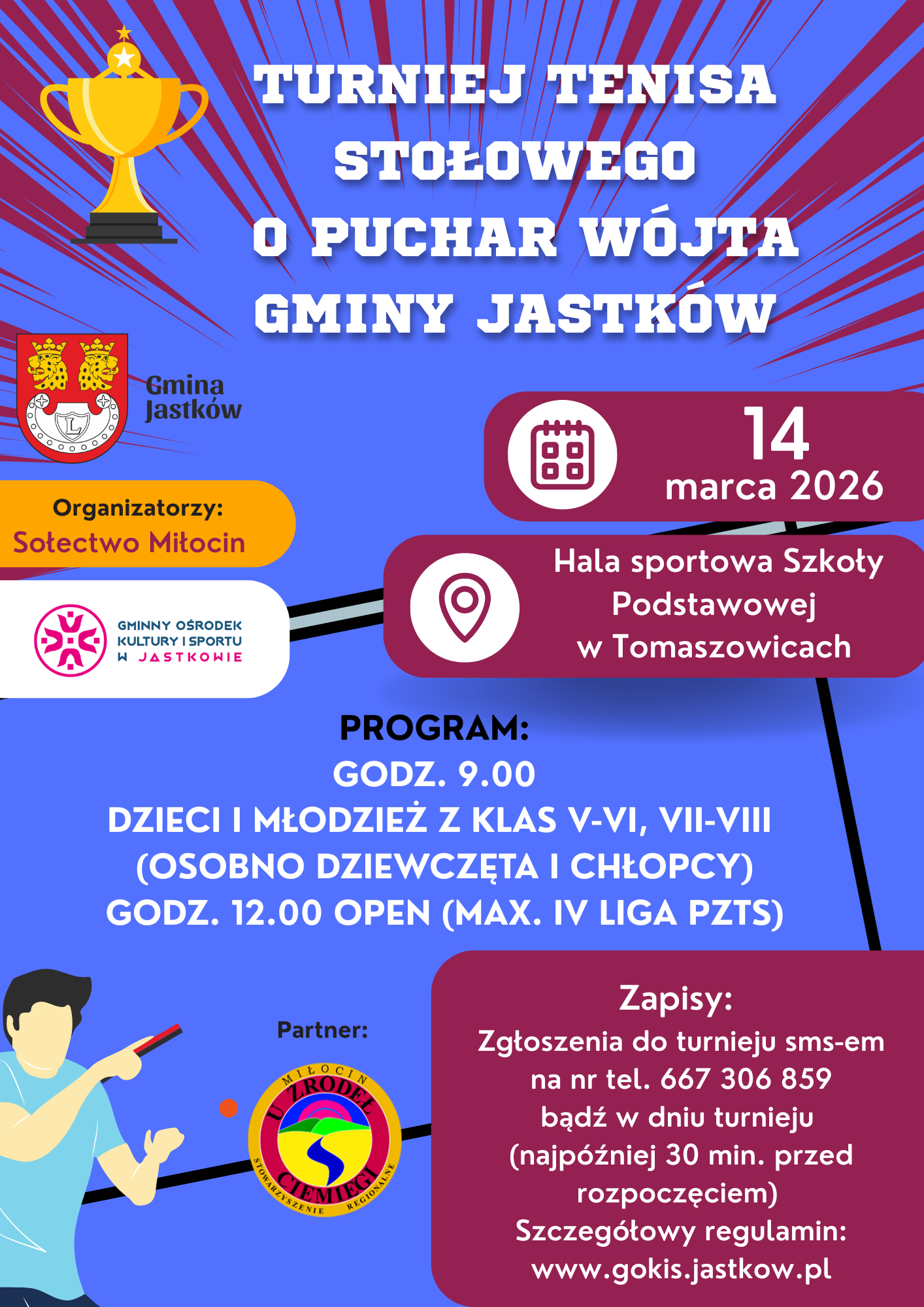 TURNIEJ TENISA STOŁOWEGO 03-03-2026Data publikacji, 03-03-2026, gokisAdminAutor, gokisAdmin, 89Ilość wyświetleń, 89 Regulamin w załączniku.