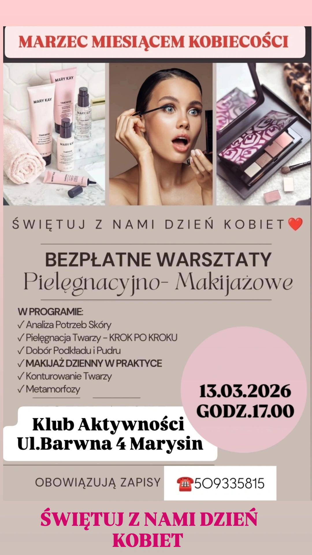 BEZPŁATNE WARSZTATY PIELĘGNACYJNO - MAKIJAŻOWE 10-03-2026Data publikacji, 10-03-2026, gokisAdminAutor, gokisAdmin, 32Ilość wyświetleń, 32 Zapraszamy :)